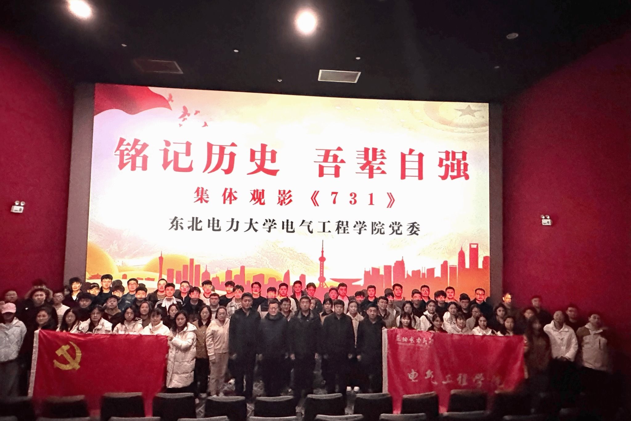 为巩固党史学习教育的阶段成果,切实加强对师生党员的思想引领和爱国主义教育。10月17日下午,电气工程学院党委组织全院师生党员集中开展“铭记历史 吾辈自强”之历史纪实影片《731》主题党日观影活动。以“电影大课堂”推动红色教育入心入脑。