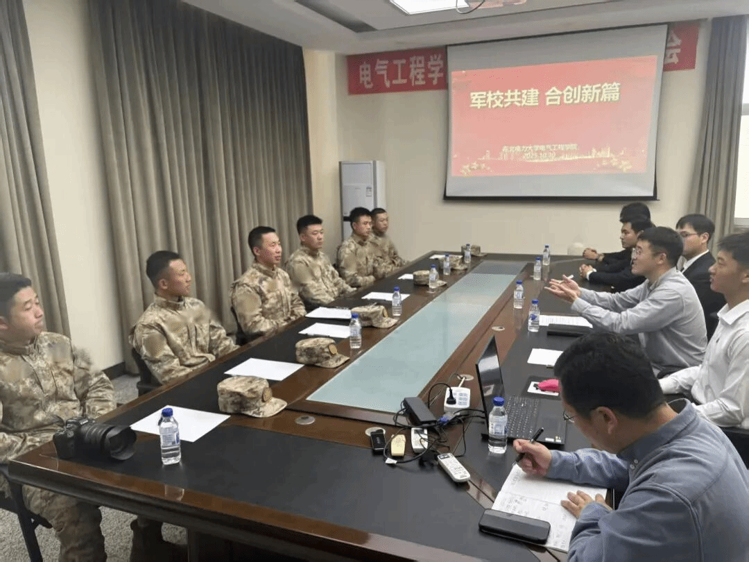 2025年10月30日,电气工程学院与驻吉某部在电动大楼A402会议室开展“军校共建共育”党建联建交流活动。部队党员代表、电气工程学院党委副书记兰阳、辅导员关博文及学院电研第一党支部、电研第五党支部学生党员代表参加本次活动。