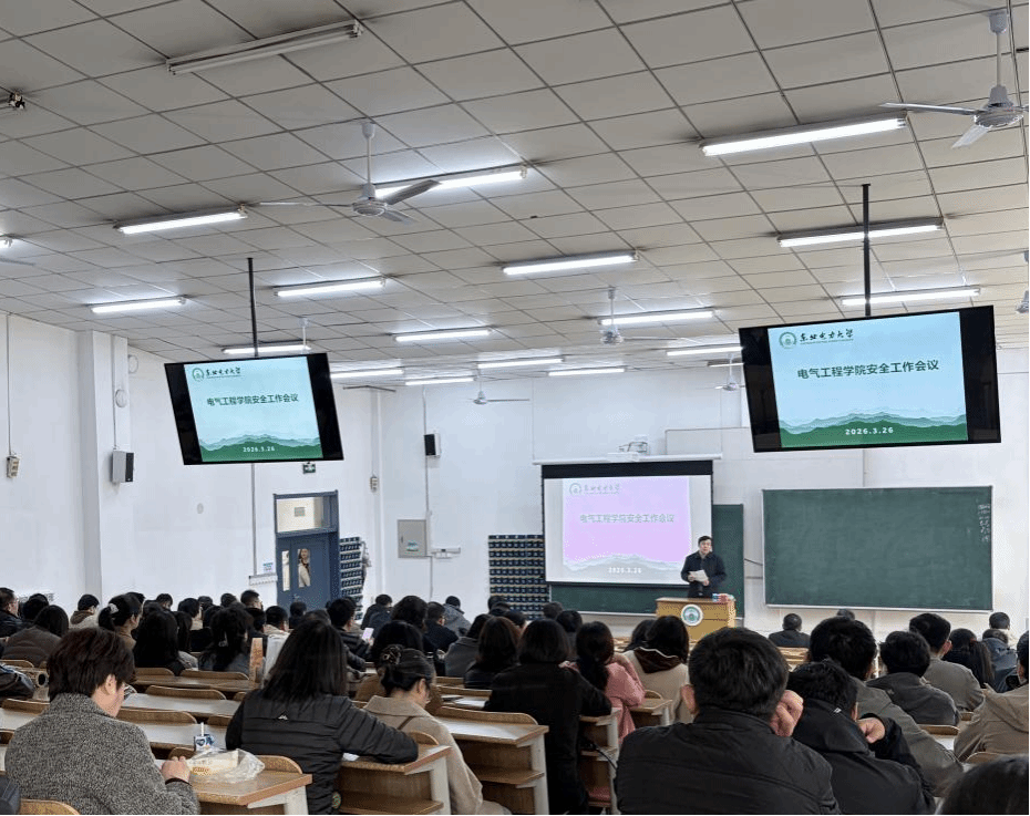 2026年3月26日下午,电气工程学院在二教2合召开安全工作专项会议,学院全体教职工参加会议,会议由杨茂书记主持。
