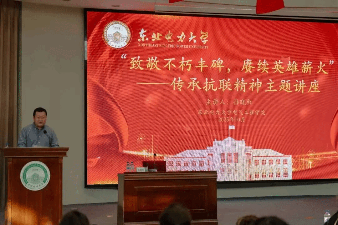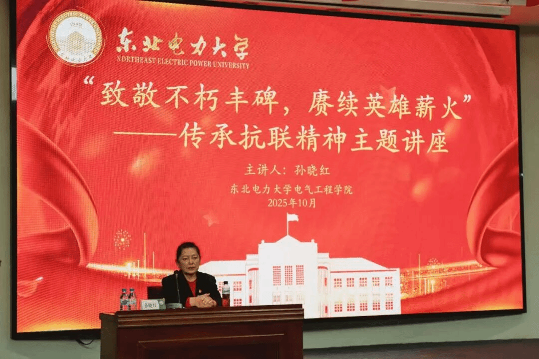 为深切缅怀东北抗联英雄事迹,大力弘扬伟大的抗联精神,引导广大青年学生从党史学习中汲取信仰力量,牢铸爱国主义情怀。2025年10月23日下午,红电薪火抗联精神宣讲团学术顾问聘任仪式暨“致敬不朽丰碑 赓续英雄薪火”抗联精神专题讲座在校学术中心拉开帷幕。本次讲座嘉宾为东北抗联第一军政治部主任宋铁岩将军后人孙晓红女士。电气工程学院学生工作办公室辅导员吕迪、刘晏辰、刘博及学生代表280余人出席了本次活动,活动由学院党委副书记兰阳主持。
