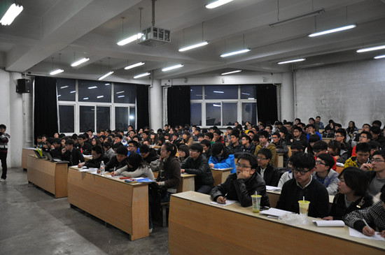本次交流会的内容主要分为三部分:首先,由科技部同学对举办长通杯的目的、意义、赛程安排和奖项设置进行了简单的介绍,对大赛所需技能从硬件、软件和焊接技术三方面为大家进行了讲解。其次,由四位专业知识丰富的学长对(A)简易无线信息传输装置、(B)智能热释电监控系统、(C)自动寻轨竞速小车、(D)智能交通灯这四个竞赛题目分别做了详细说明,介绍了单片机的相关基础知识,列举了典型案例供大家参考,并与同学们进行了深入的交流。同学们积极踊跃提问,技术指导人员耐心细致解答,场上气氛热烈,不时迸发出灵感的火花。最终,由电气工程学院科技部部长王鑫宣读了本届竞赛的报名及注意事项。