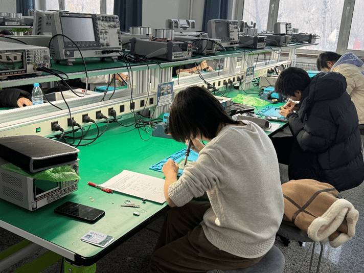 比赛要求参赛选手依据统一电路图完成硬件焊接,以焊接工艺规范性和功能实现完整性为核心评分标准。参赛学生分批次于指定场地完成焊接及功能测评。赛事采用双轨评审机制:创新中心硬件部负责功能测评,教师评委专项评审焊接工艺,全程公开、公平、公正。初评阶段筛选出功能表现优异的作品进入决赛,由8位教师评委综合评定成绩。