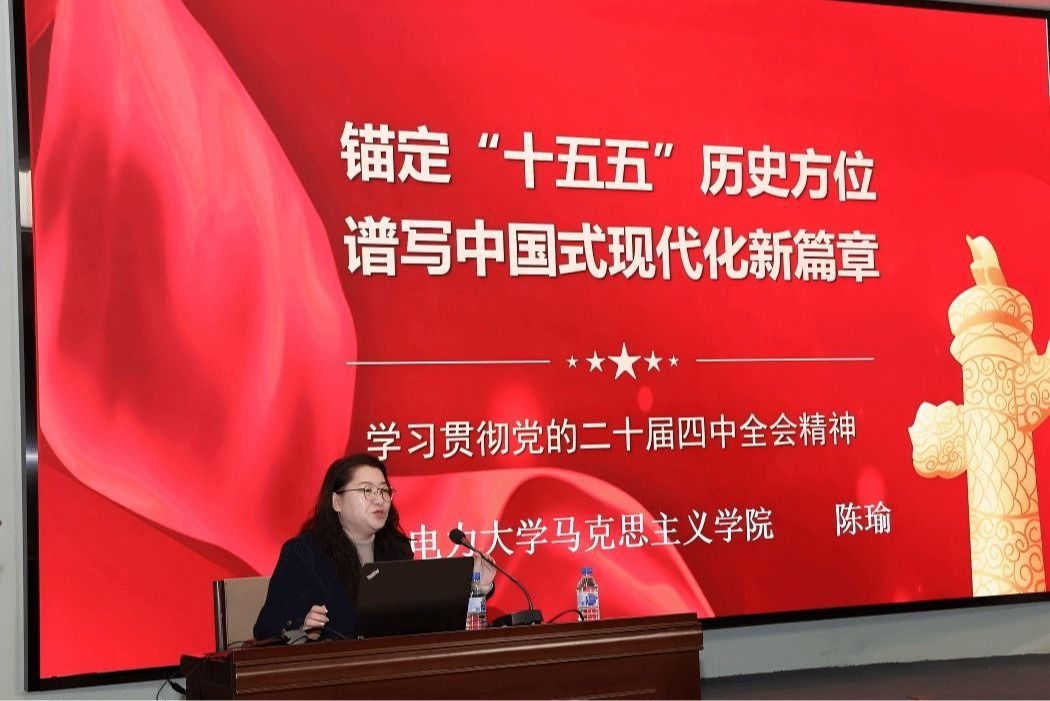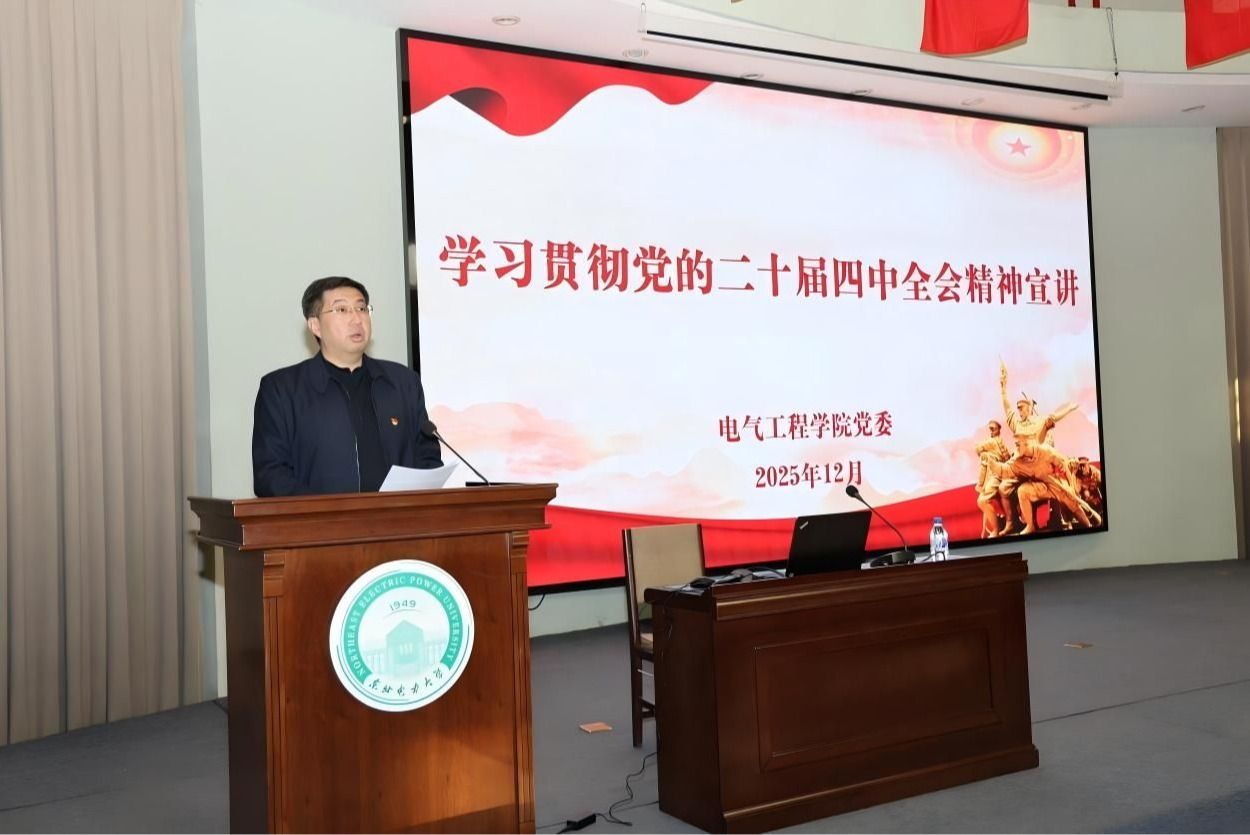 为深入学习贯彻党的二十届四中全会精神,扎实落实学校党委的部署要求。2025年12月17日上午10:00,电气工程学院党委“学习贯彻党的二十届四中全会精神宣讲会”在学术中心举行。学校宣讲团成员、马克思主义学院陈瑜老师受邀作题为《锚定“十五五”历史方位,谱写中国式现代化新篇章》专题报告,学院全体教师参会学习。宣讲会由电气工程学院党委书记杨茂主持。