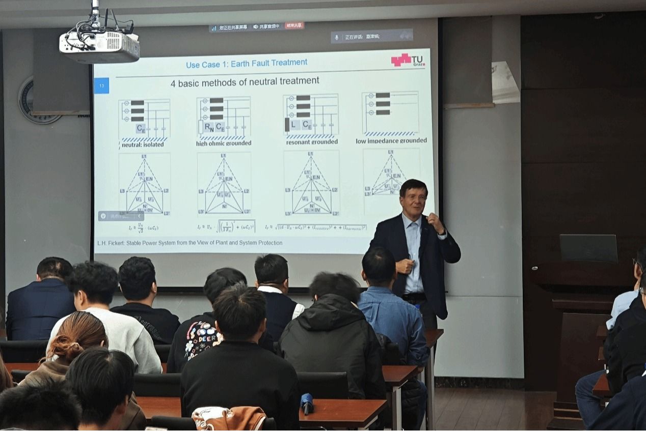 10月29日下午14:00,应学院邀请,奥地利格拉茨技术大学Fickert教授在电动楼A412作了题为《From Energy Fundamentals to Power System Requirements: Grid Design, Safety, and Protection》的学术报告。报告会由东北电力大学电气工程学院孙银锋老师主持,学校学科建设办公室副主任刘闯教授、电气工程学院副院长姜涛教授出席报告会,电气工程学院部分教师、硕士和博士研究生参加了本次报告会。