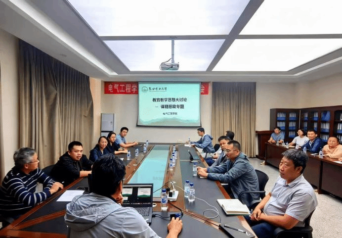 2025 年 9 月 18 日 8:30,东北电力大学电气工程学院在电动大楼 A402 会议室举行了课程教学大纲修订研讨 —— 课程思政专题会议。教学副院长、各课程负责人、优秀教师代表以及教学秘书参加了此次会议,共同探讨各课程教学大纲修订中如何落实新培养方案中课程思政的目标要求。